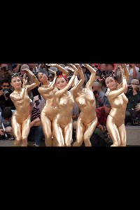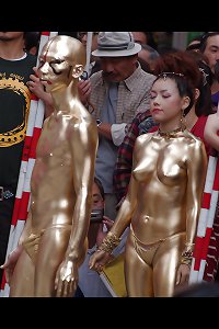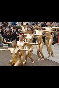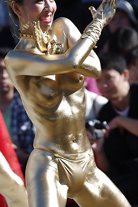 Chinese girls- Gold paint- Hot Public Tits and Ass