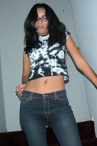 young chick in black panty masturbating vulva and testicles